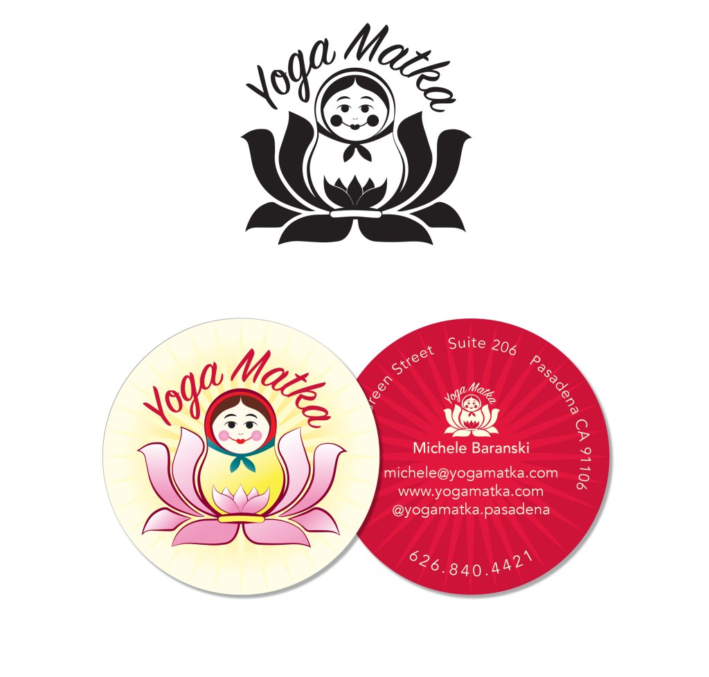 Yoga Matka, branding and logo design — Logo design for new yoga studio in Pasadena CA. The illustration aims to incorporate the spirit of yoga, with the owners eastern European heritage. Matka is the word for mother, and many of the clientele are just that! Logo and branding used on all digital and print materials, including this 2-sided round business card.